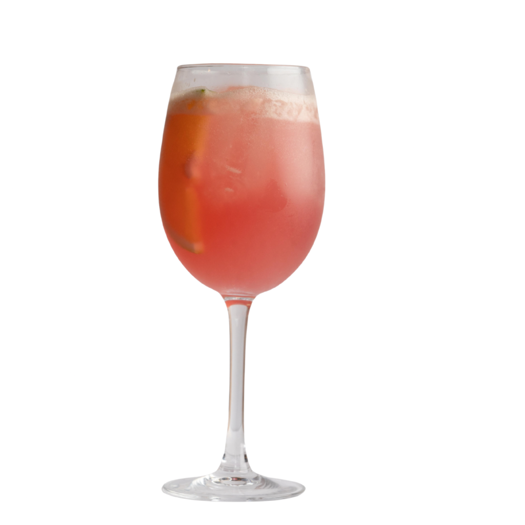 Sake, vodka, jugo de naranja y piña, limón, sirope de jamaica y soda de lima-limón